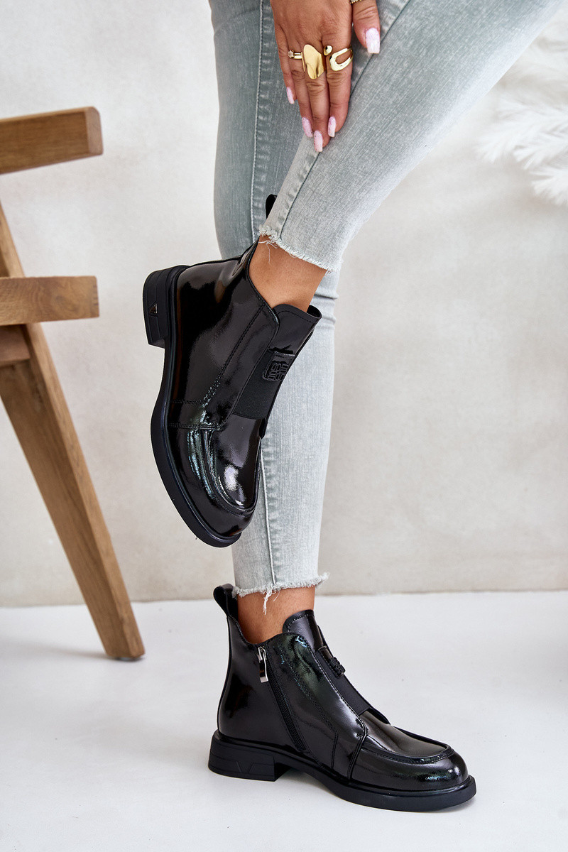 Nahast lakiefektiga naiste sussid musta värvi D&A JC42-24