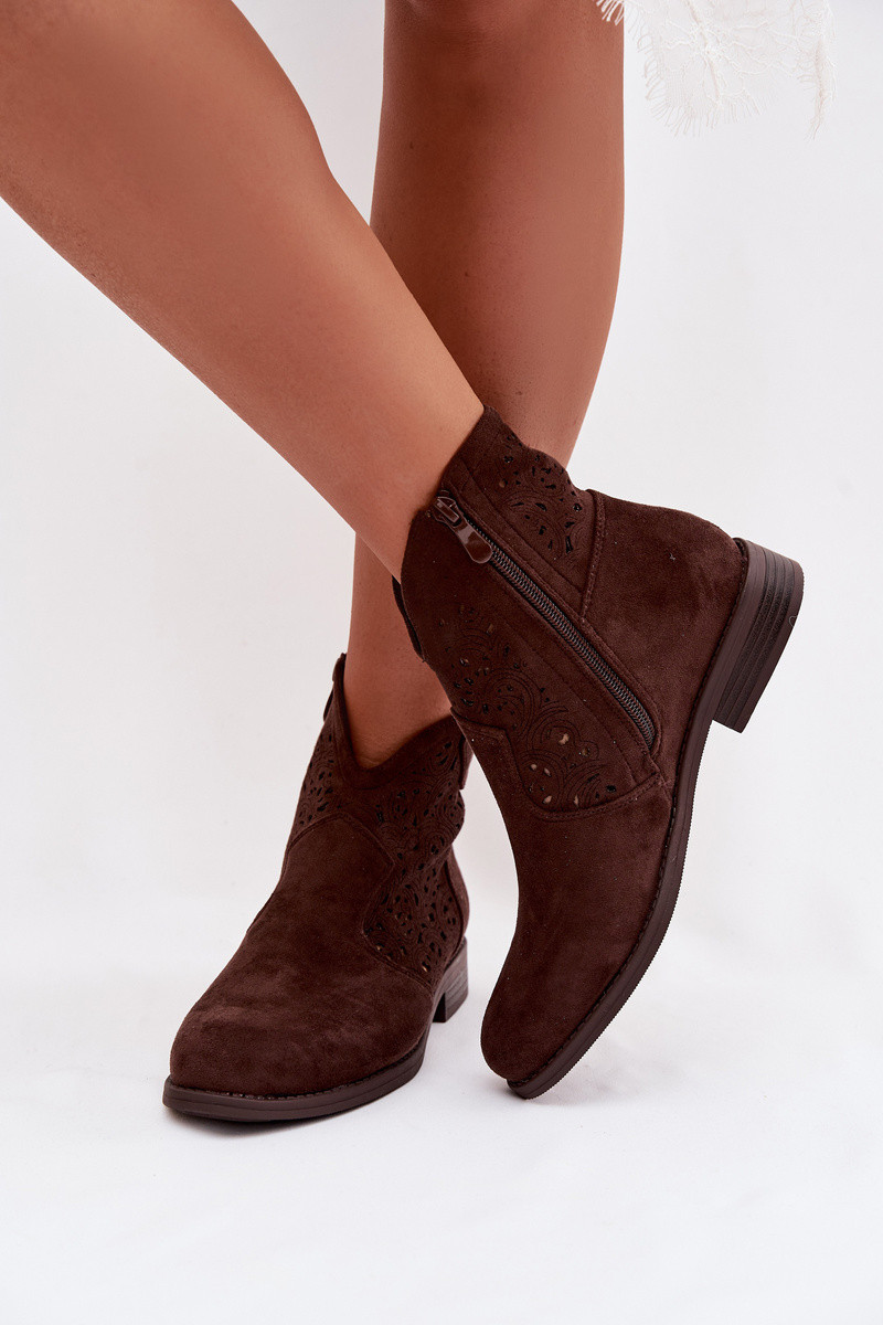 Ažuurilised naiste saapad laia kontsaga S.Barski HY61-8026 šokolaadi värvi