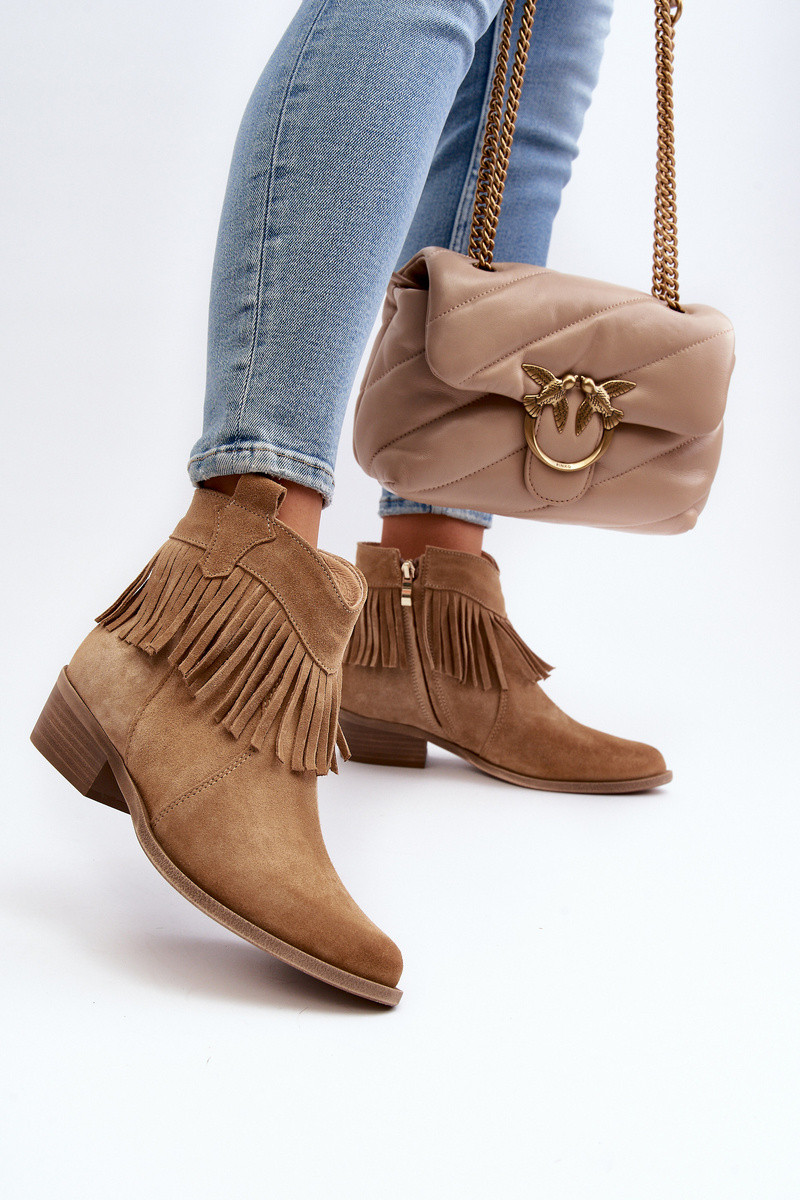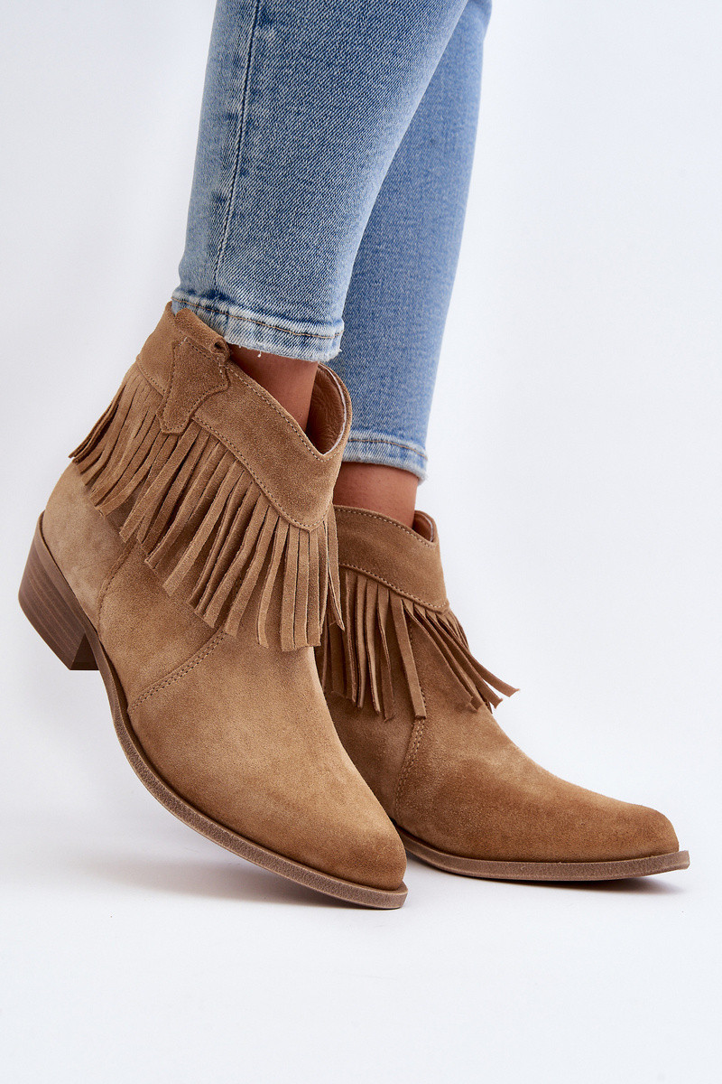Zazoo 3430 naistel nahast saapad rippudega beeži värvi