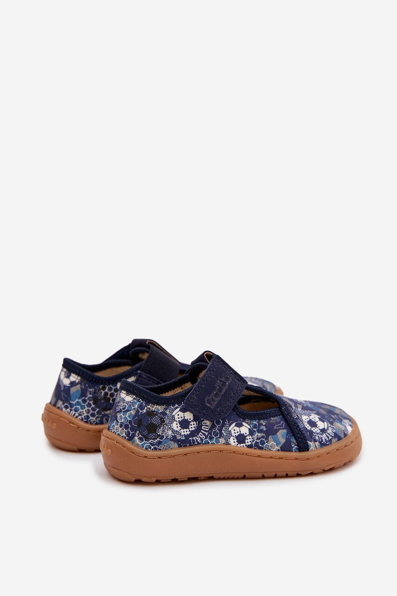 Plätud Laste jalanõud krõpsudega kinnitatav Barefoot Pallid Froddo Cannvas G1700439-5 Sinist värvi