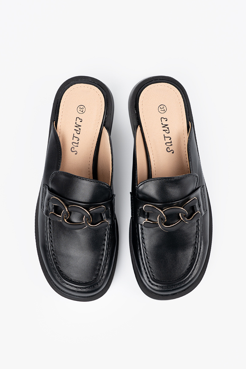Mustad sussid kunstnahast madala kontsaga