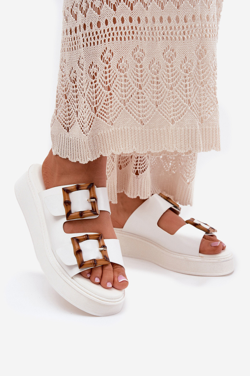 Xanivia valge värvi naiste kunstnahast sussid platvormi ja kinnitustega