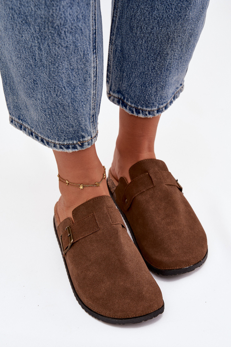 Naisten sussid puukingadega platvormiga ja klambritega, pruunid Selio