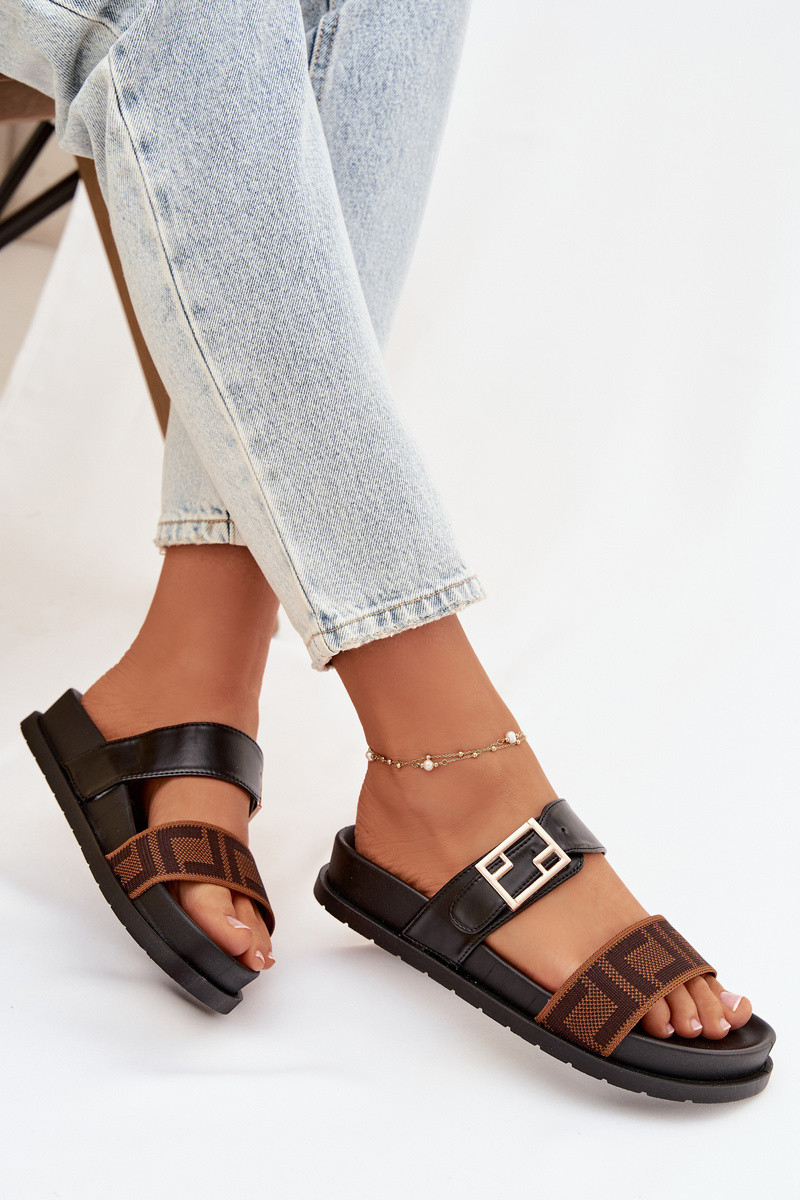 Naisten sussid kuldsete pandladega, must värv