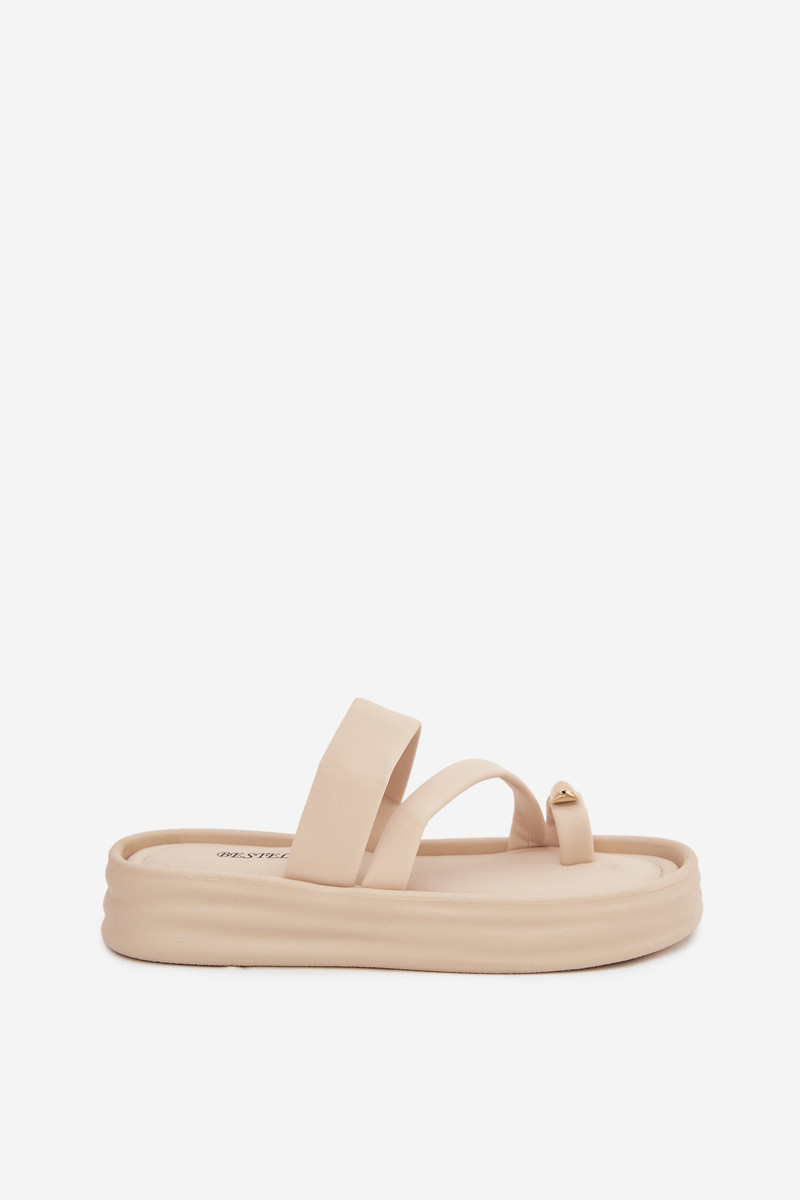 Naistel elevandiluust värvi sussid rihmade ja kuldsete detailidega Farielle