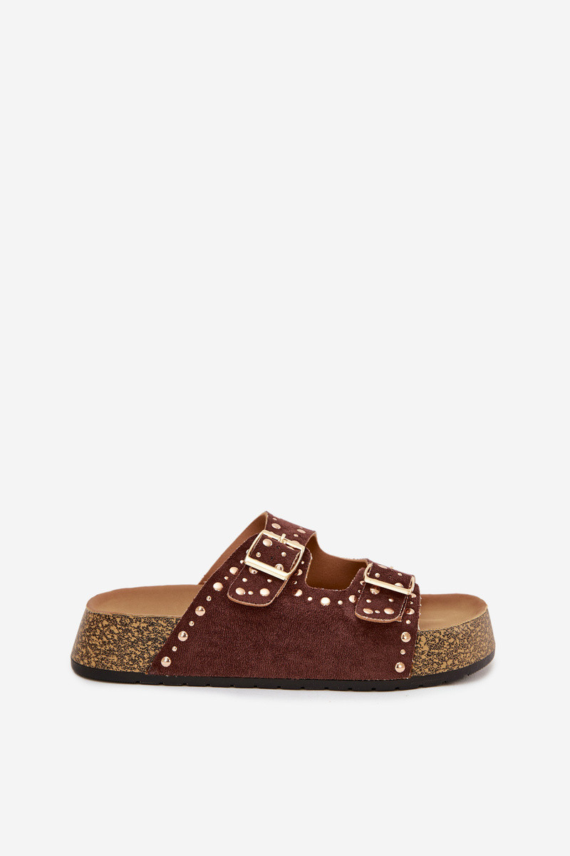 Naistel pruunid sussid kuldsete klambrite ja nupudega Tervina