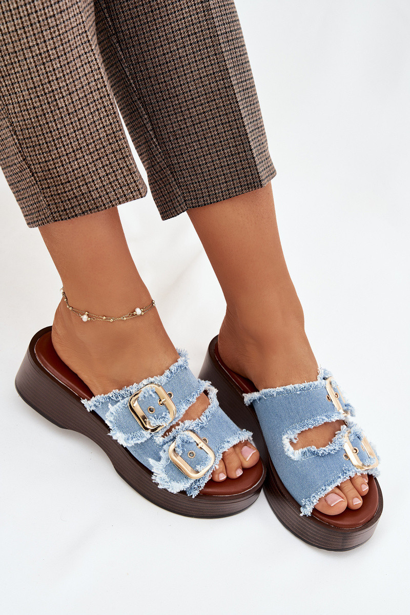 Naistel platvormiga sussid kuldse värvi sinise värvi pandlatega Renelisse