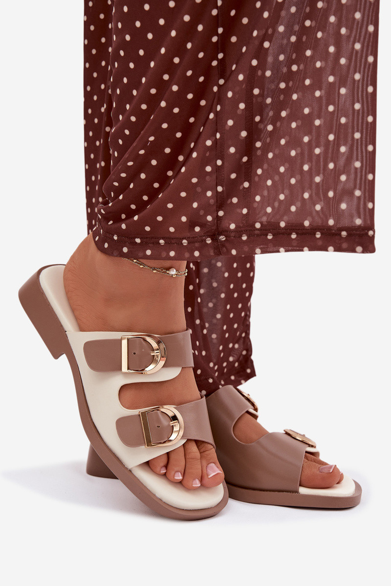 Naistel kuldse värvi sussid liivavärvi pandlatega Danelle