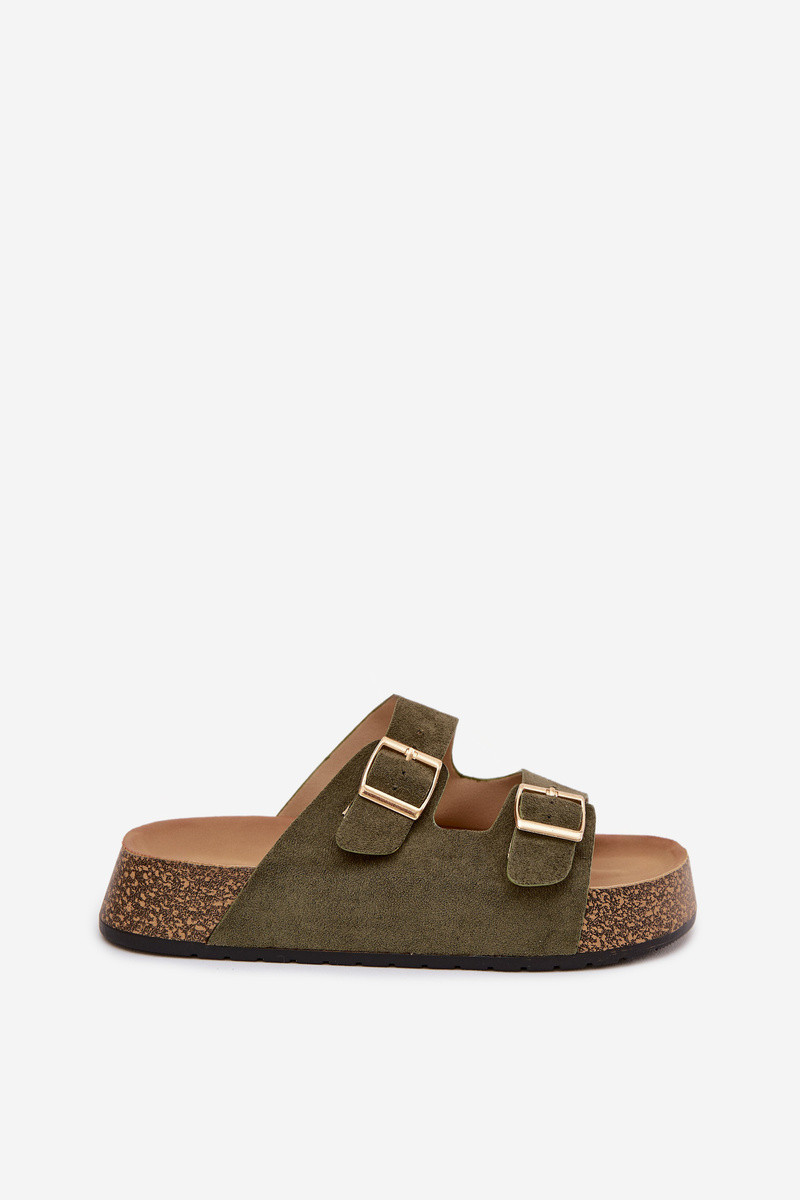 Tovessa rohelised naiste šlepetid platvormiga ja kuldsete pandlitega