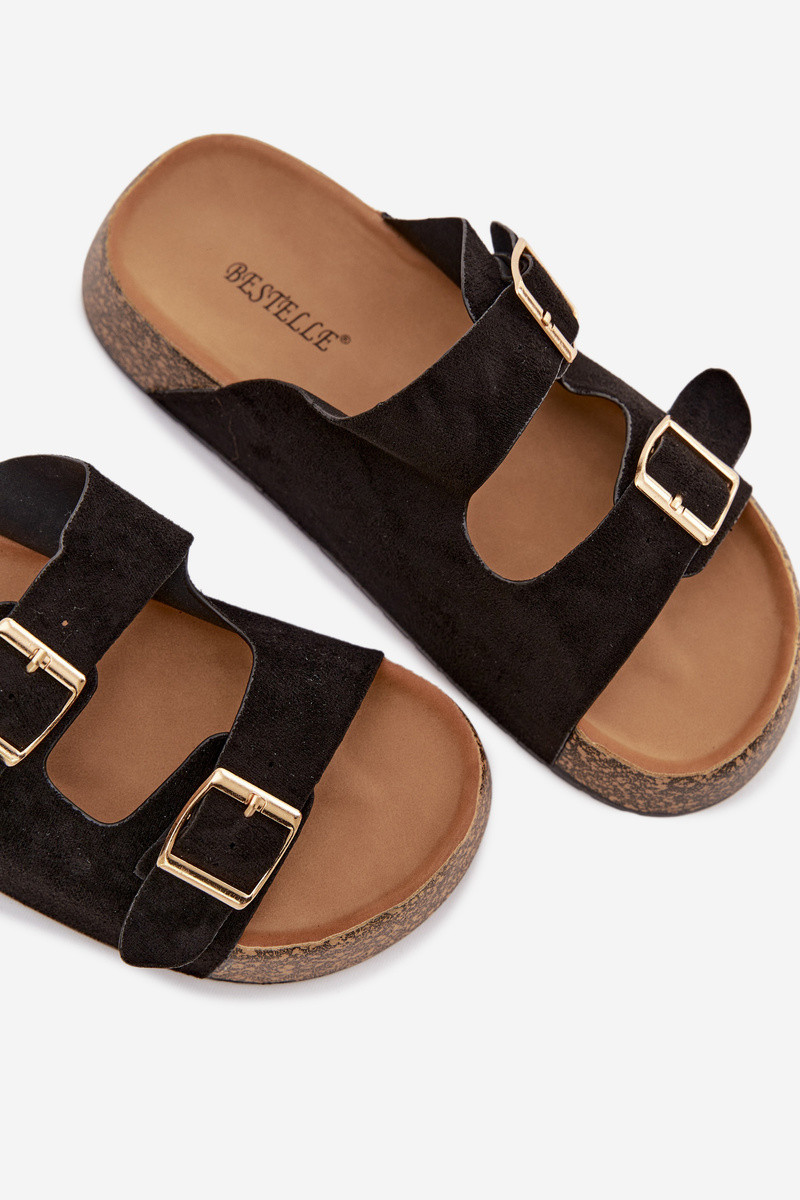 Tovessa mustad naiste šlepetid platvormiga ja kuldsete pandlitega