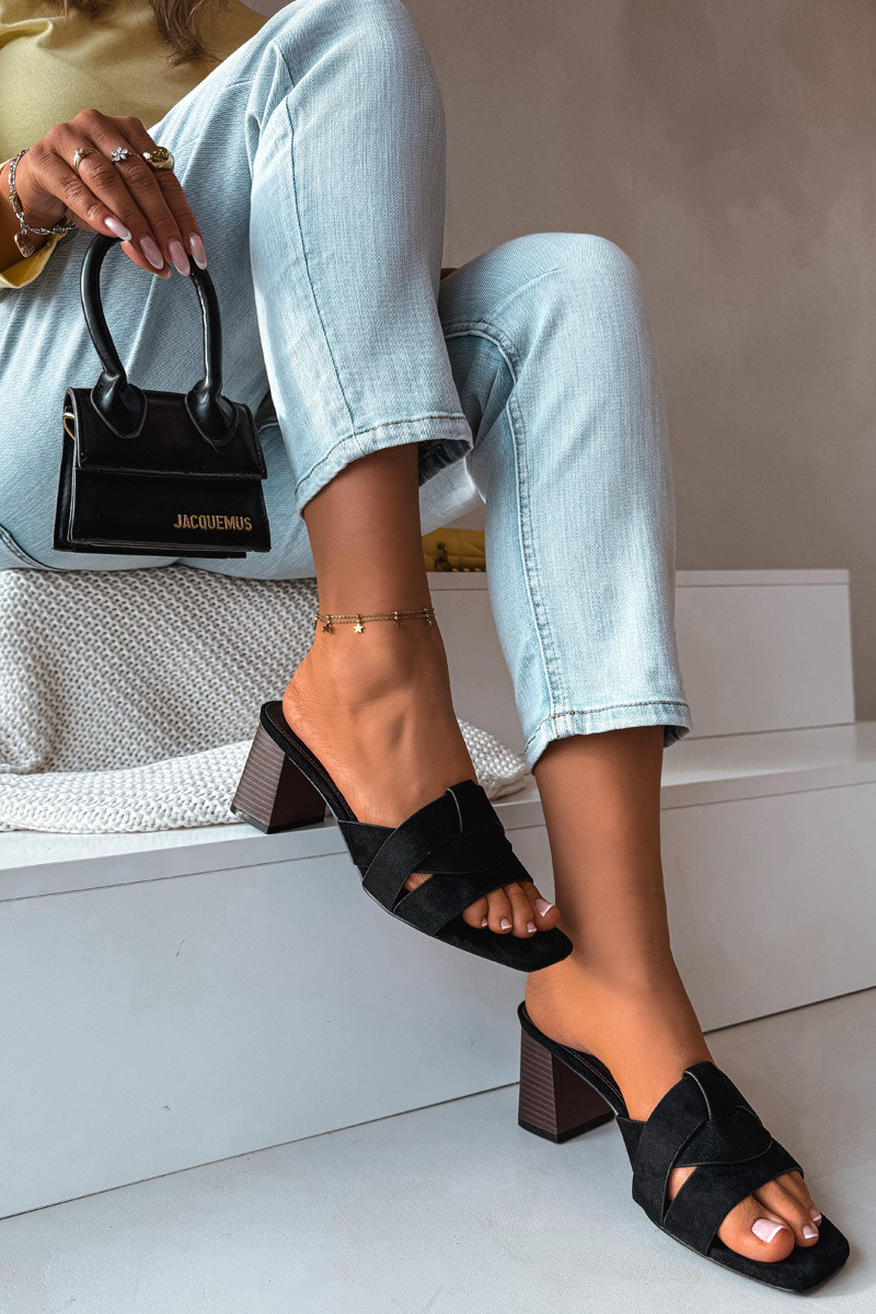 Naistel sussid kontsade ja rihmadega kunstsuede, musta värvi, Corivelle