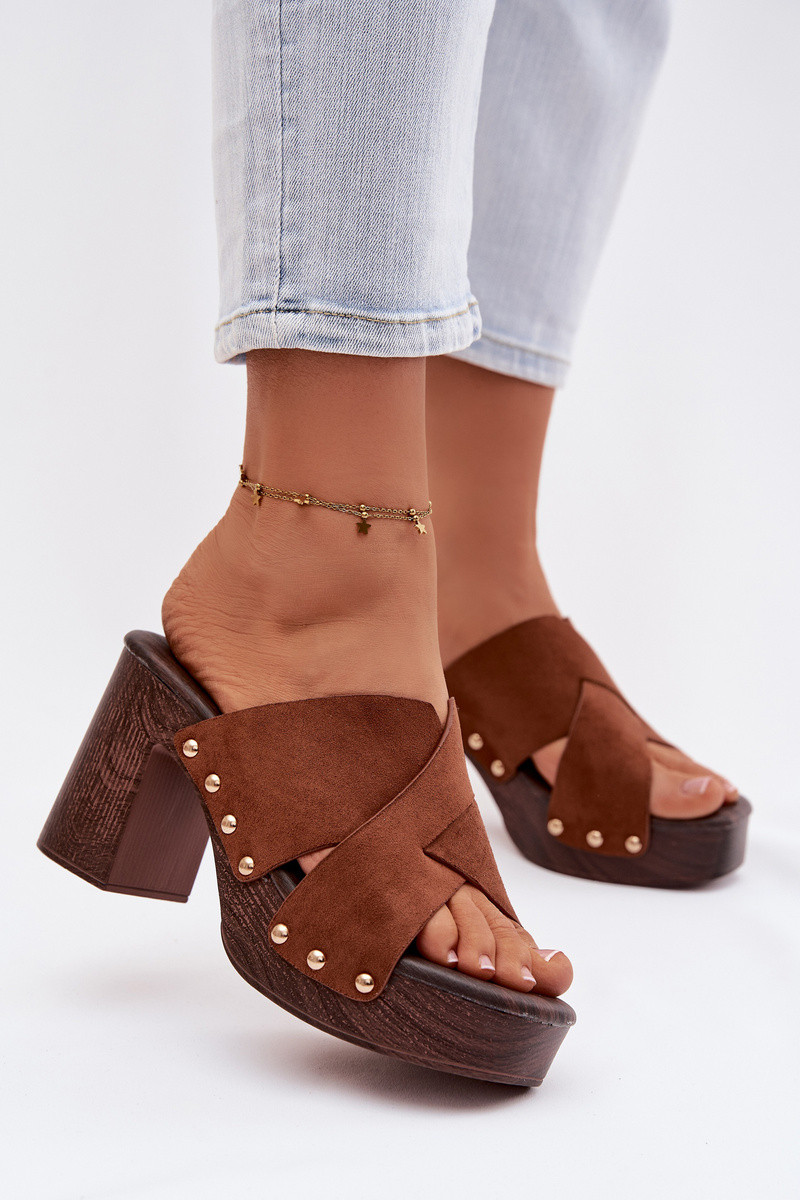 Naistepüksid kontsade ja kuldsete nööpidega pruunid Nerelle