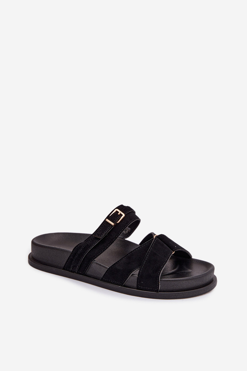 Naiste sussid kuldsete rihmade ja pandlitega, mustad Selorina