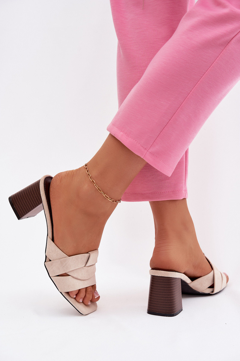 Naistel sussid kontsade ja rihmadega kunstsuede liivakarva Corivelle