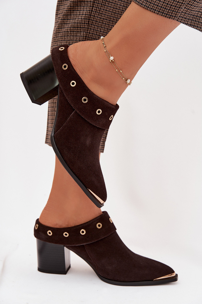 seemisnahksed sussid Kauboi saapad Pealiste omad kõrge jämeda kontsaga D&A CR61-3059 Czekoladosissee