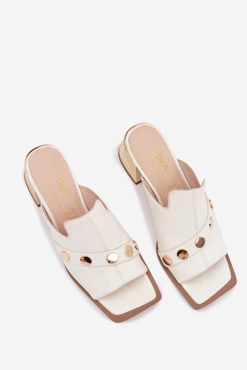 Plätud naturaalsest nahast kõrge jämeda kontsaga dekoreeritud kontsaga D&A CR61-3063 valget värvi