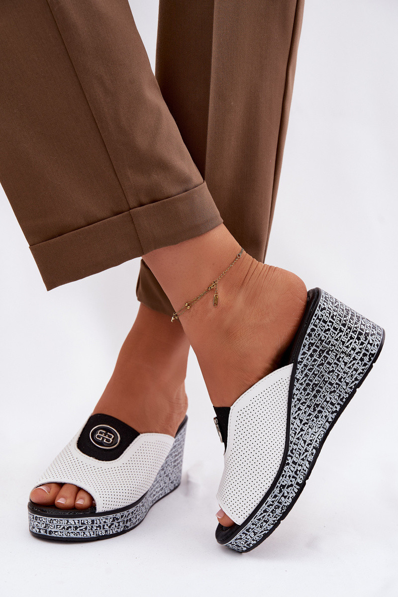 Nahksussid platvormiga ornamentidega S.Barski LR61-7011 valge