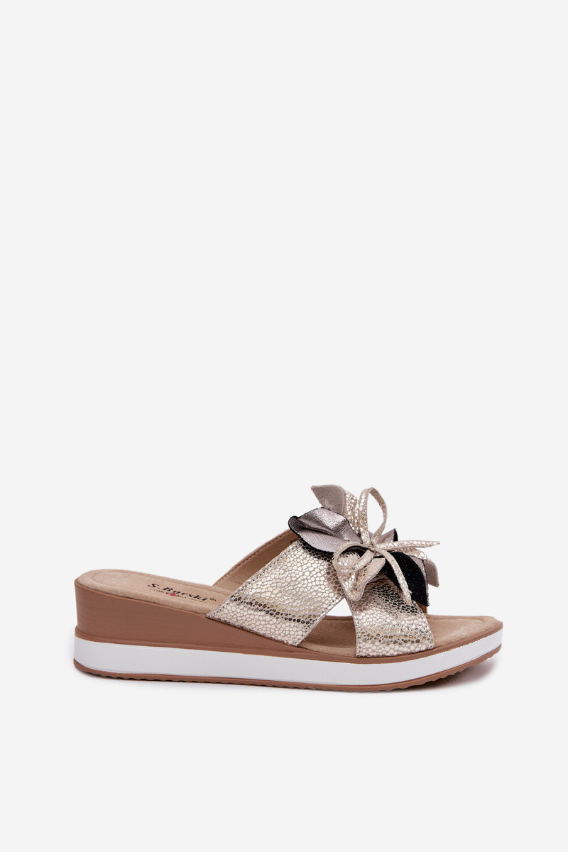 Nahksussid platvormiga dekoratiivse lillekese S.Barski GR61-5989 kuldse värvi