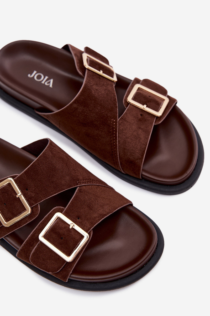 Dame šokolaadi värvi sussid kunstnahast kuldsete pandlitega Selissea