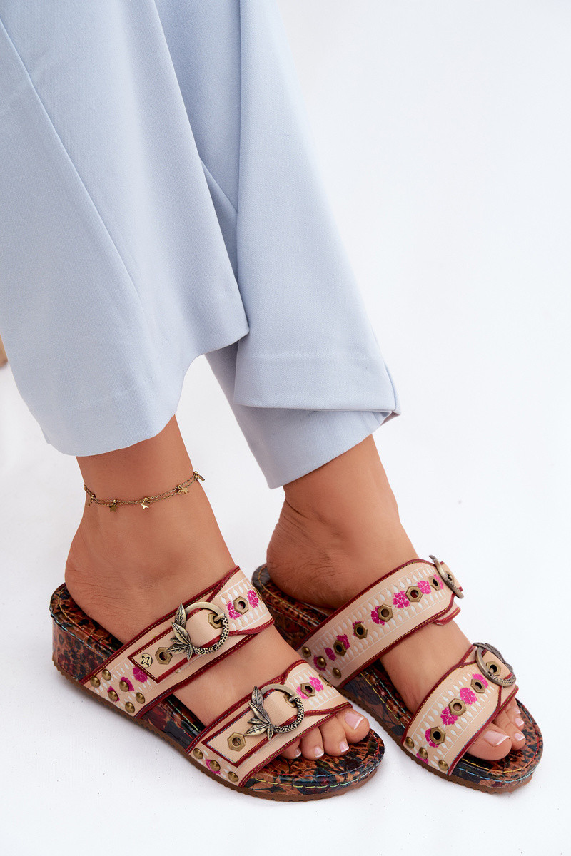 Nahkseotud naiste sussid mustriga platvormiga erinevates värvides
