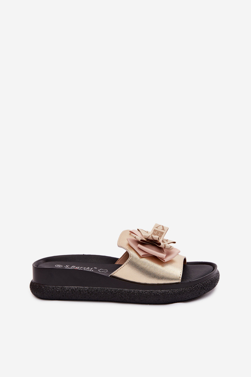 Naiste sussid looduslikust nahast ja lipsudega S.Barski KV61-6061 kuldse värvuses