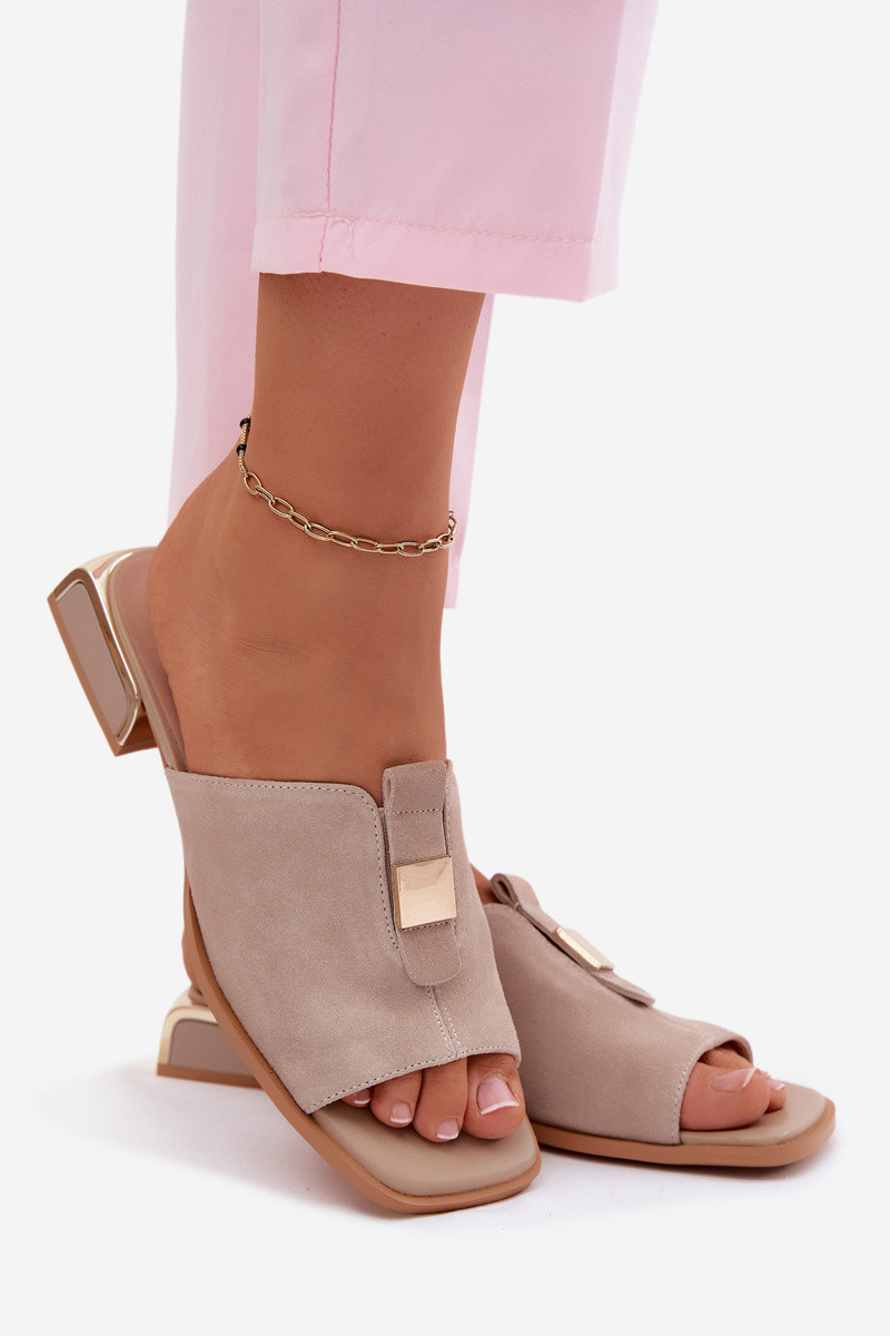 Pealhk Mustriline naiste plätud kõrge jämeda kontsaga Sellel onciejka K7522-04 beeži...