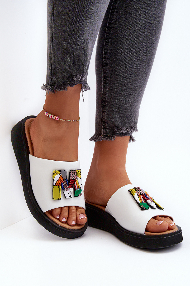 VINCEZANaiste nahast sussid ornamentidega valged Asames