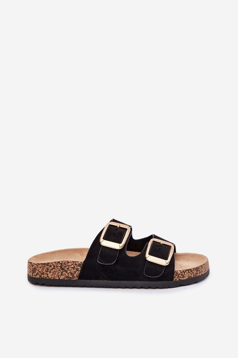 Naiste mustad kunstnahast sussid kuldsete pandlitega Vorella