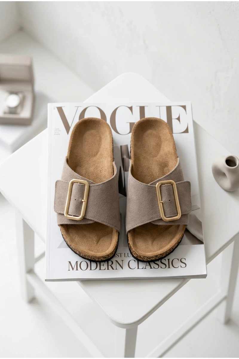 Pealhk naiste seemisnahksed sussid neetide ja pandlaga beeži värvi Beryl