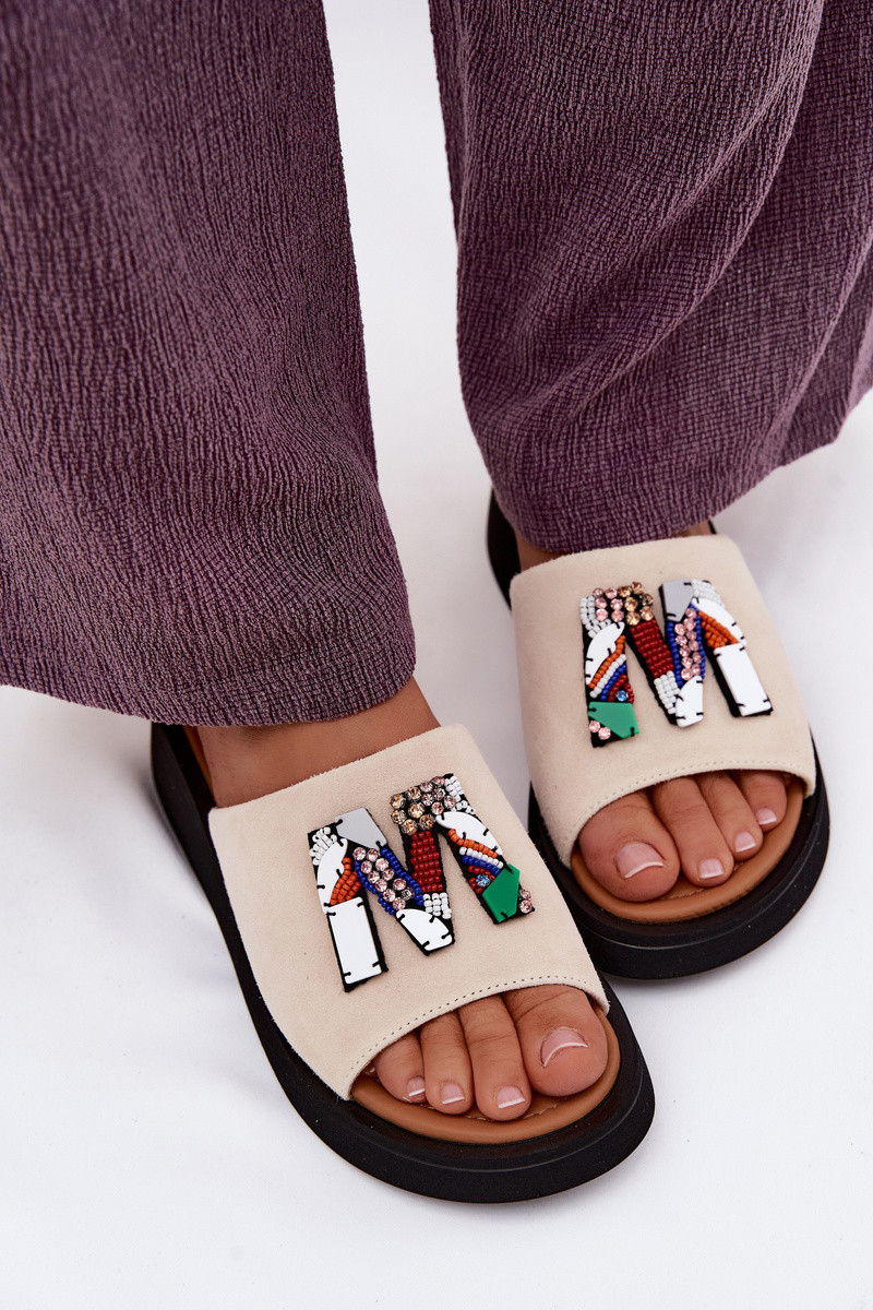 VINCEZAPealhk naiste seemisnahksed sussid kaunistustega platvormiga Vinceza 66942 beeži värvi