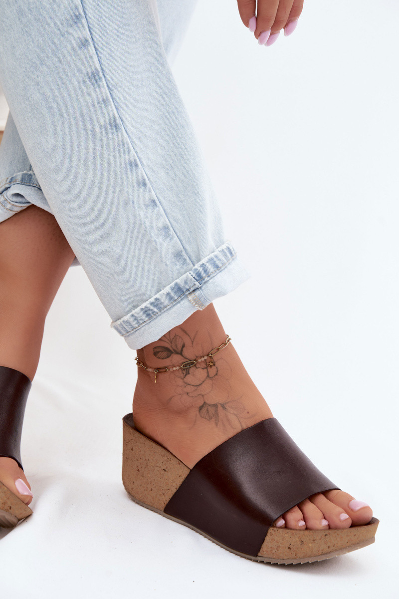 ZazooZazoo 40291 šokolaadi värvi nahast sussid korkpõhjaga