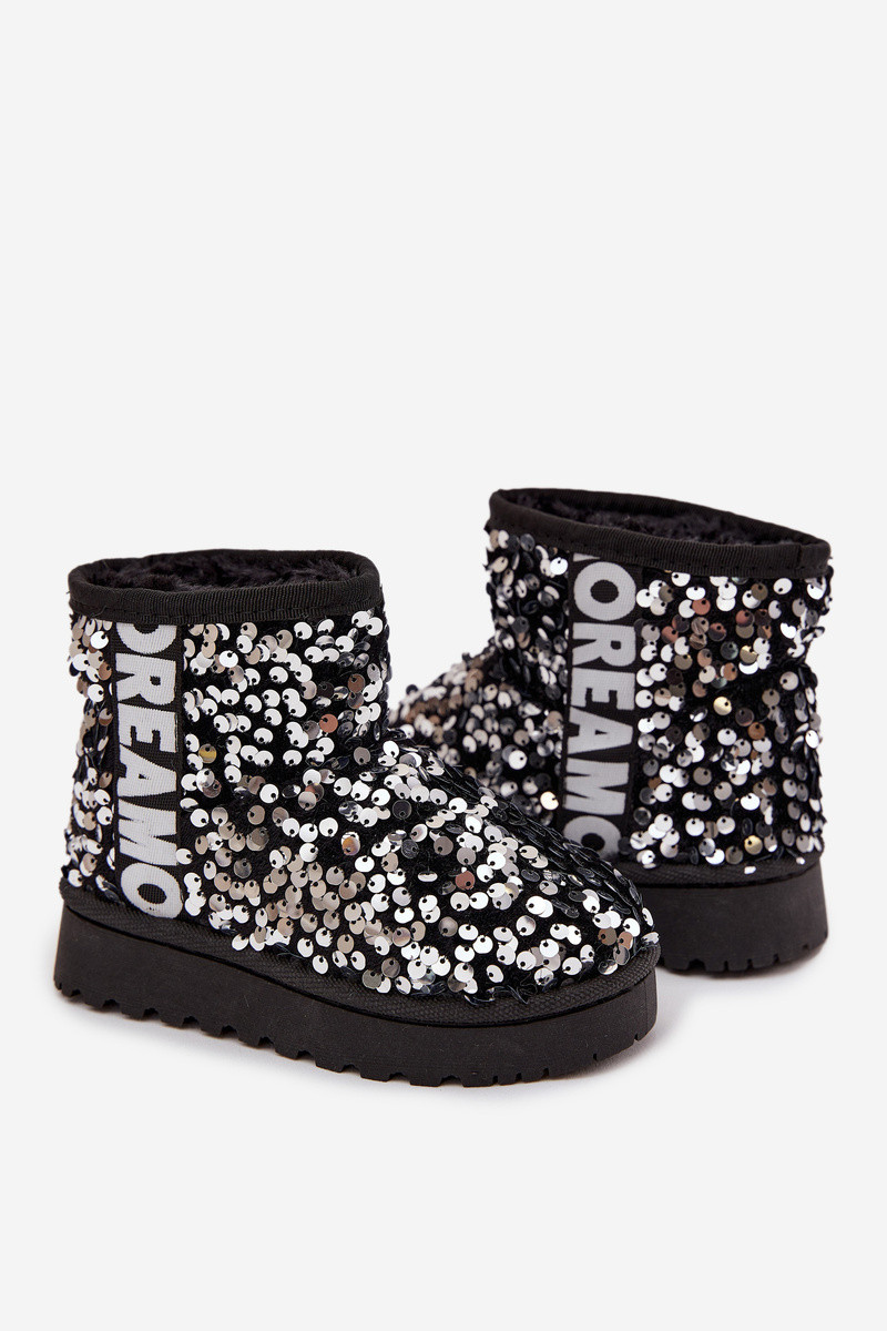 Laste lumesaapad soojendusega, läikivate soomustega musta ja hõbedase värviga Rebbica