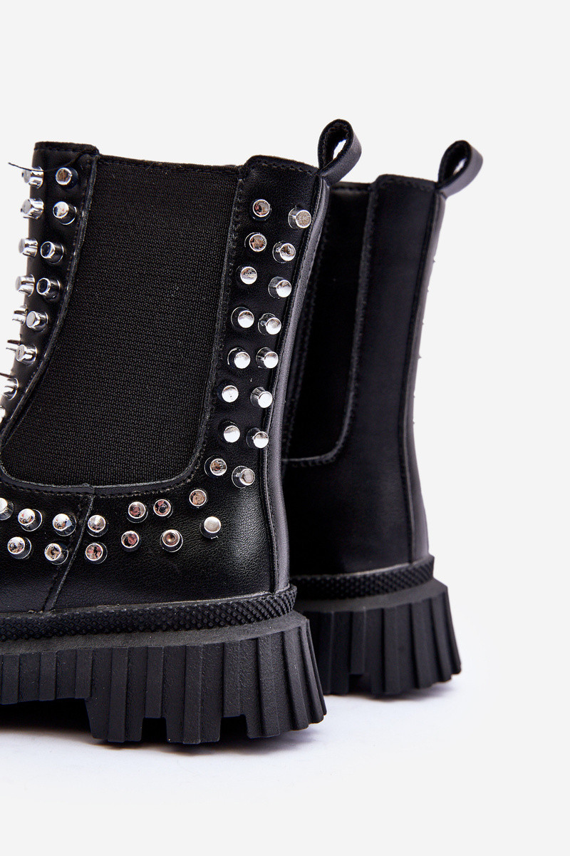 Adelie mustad laste saapad, kaunistatud mäekristallidega