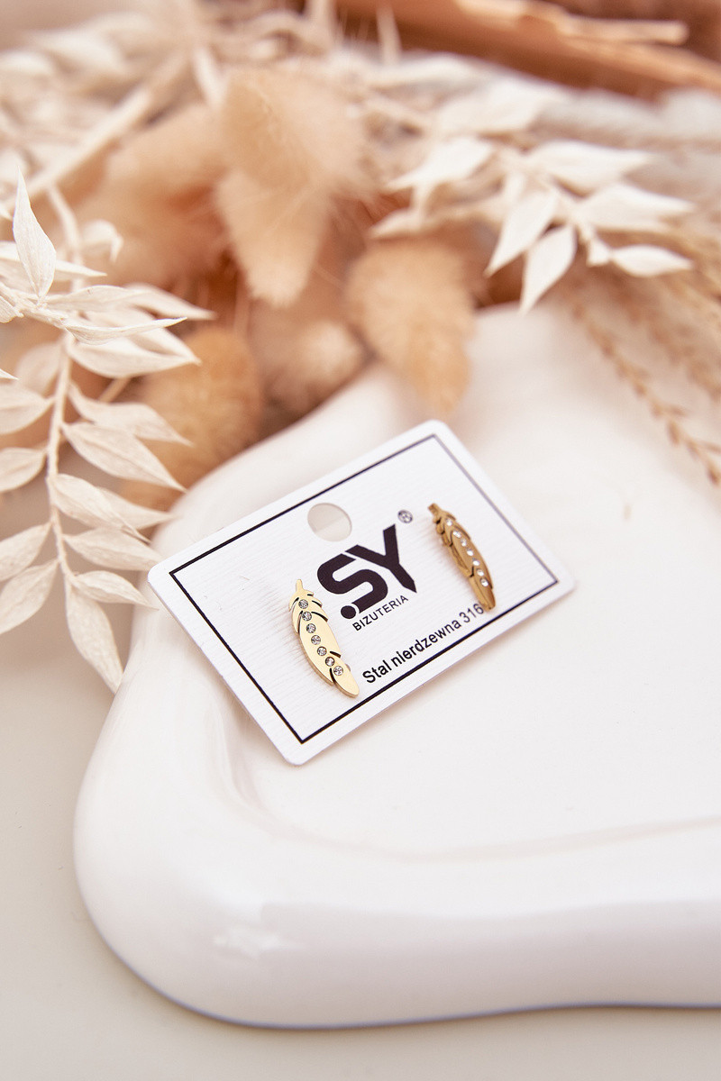Stiilsete detailidega lehed läikivate silmadega roostevabast terasest kullakarva